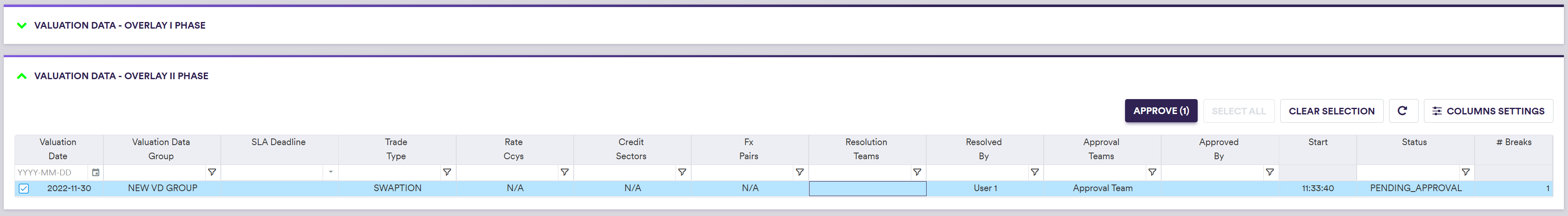 In this section, we will illustrate with a worked example how to approve valuation data overlay II break resolutions. The same process will apply to overlay I break resolutions.