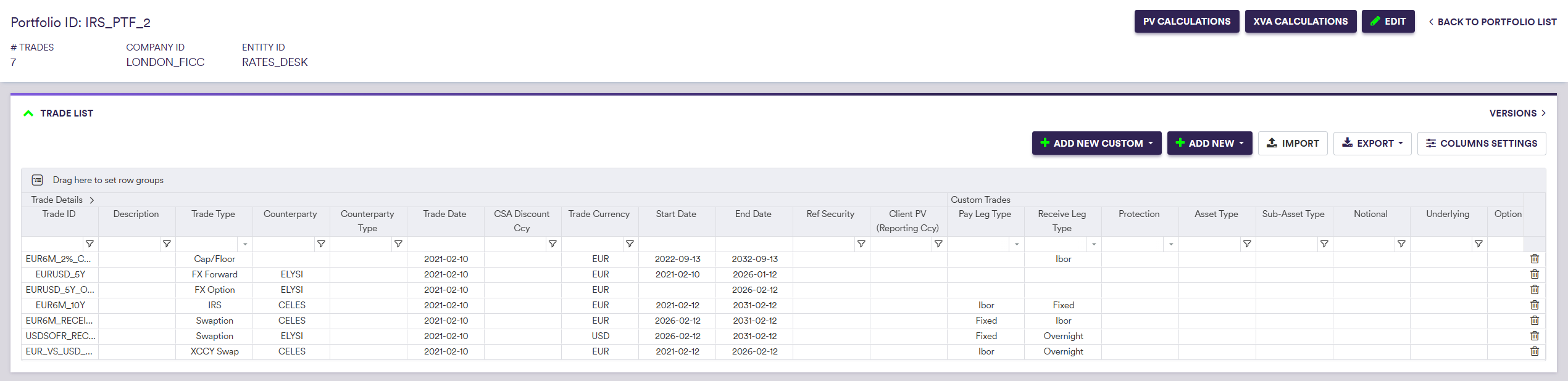 Once you have added relevant funding nodes, defined a curve configuration, a market data environment, a portfolio, the applicable valuation settings and the XVA model parameterisation, the XVA calculation interface can be accessed i) at the portfolio level under