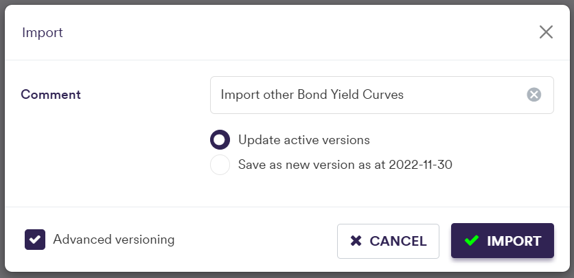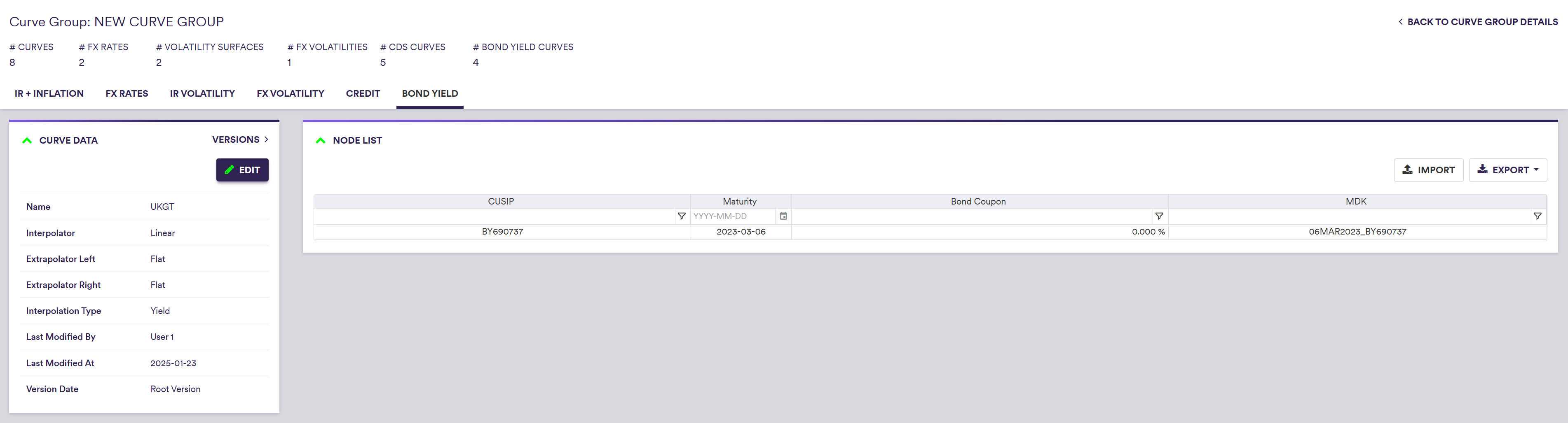 Part of our ‘NEW CURVE GROUP’ example that replicates the ‘LONDON’ curve group, this page will guide you through the process of defining a curve using two examples: manually defining the ‘UKGT curve’ bond yield curve with a 6th March 2023 maturity, or importing all the data.