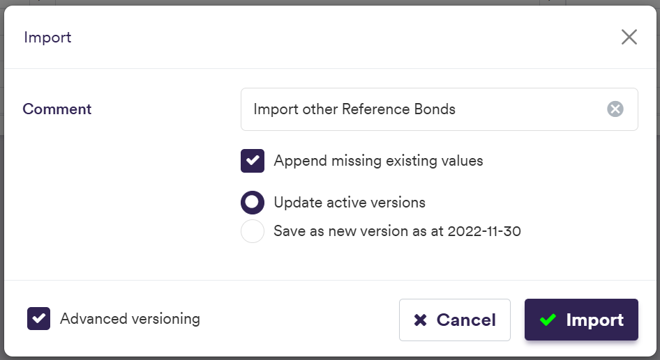 To import a curve (or a list of curves), click on (import) and select the relevant curve list definition .CSV import file.