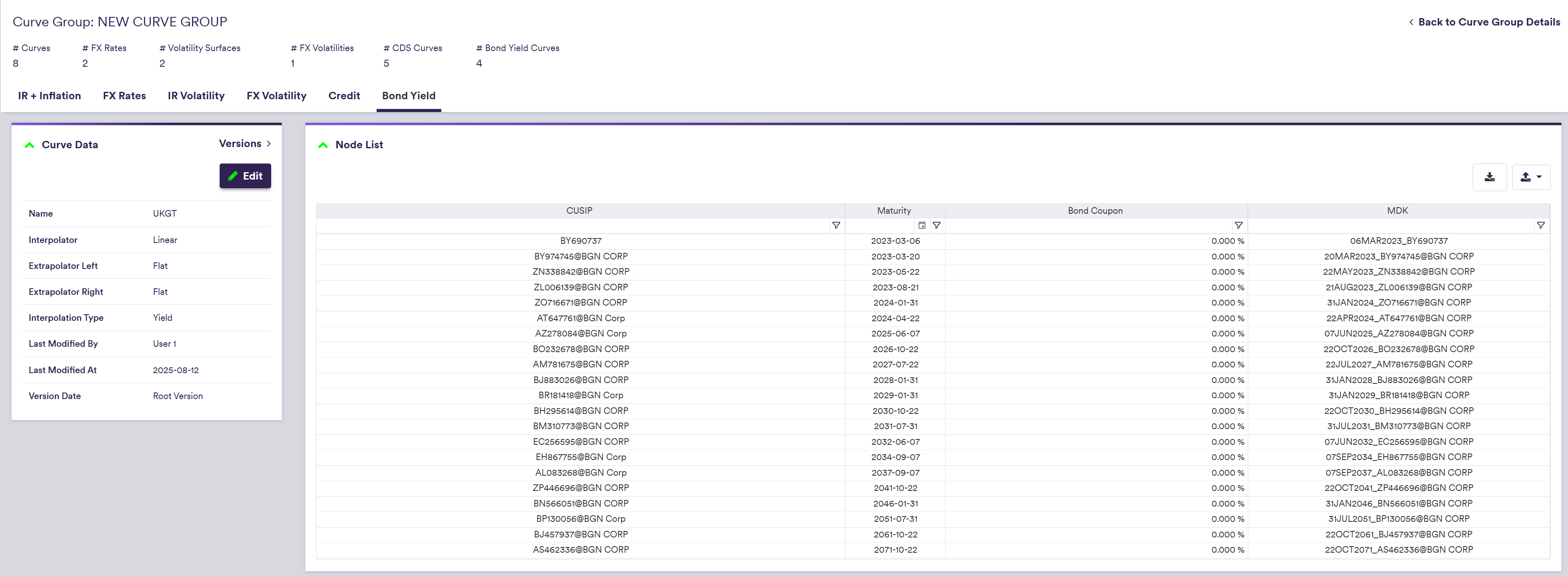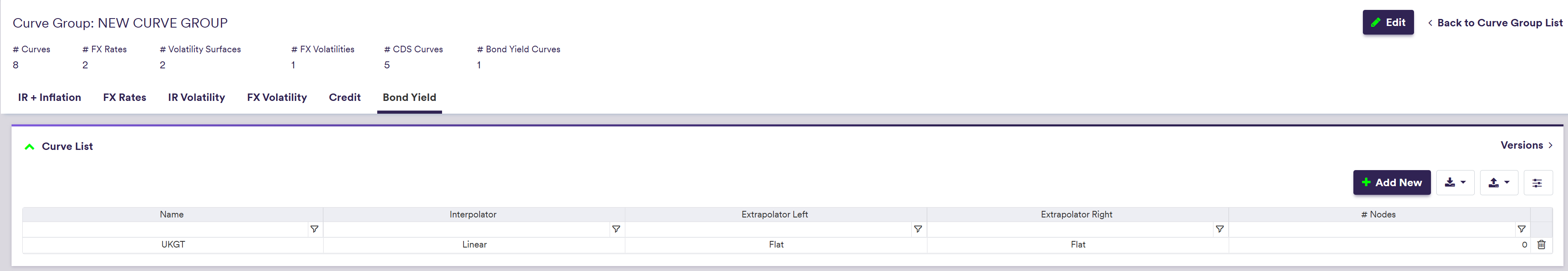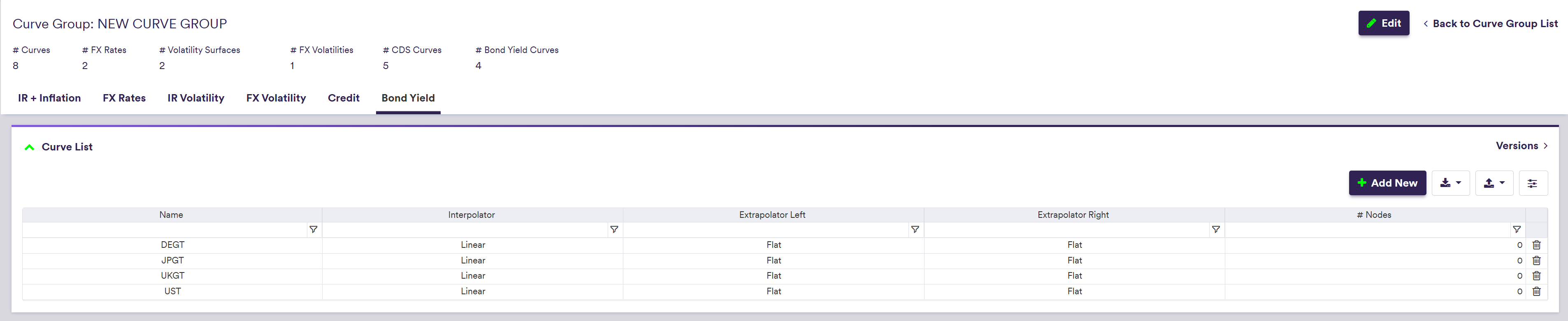 Once you have created a curve group, you can add bond yield curves to it.
