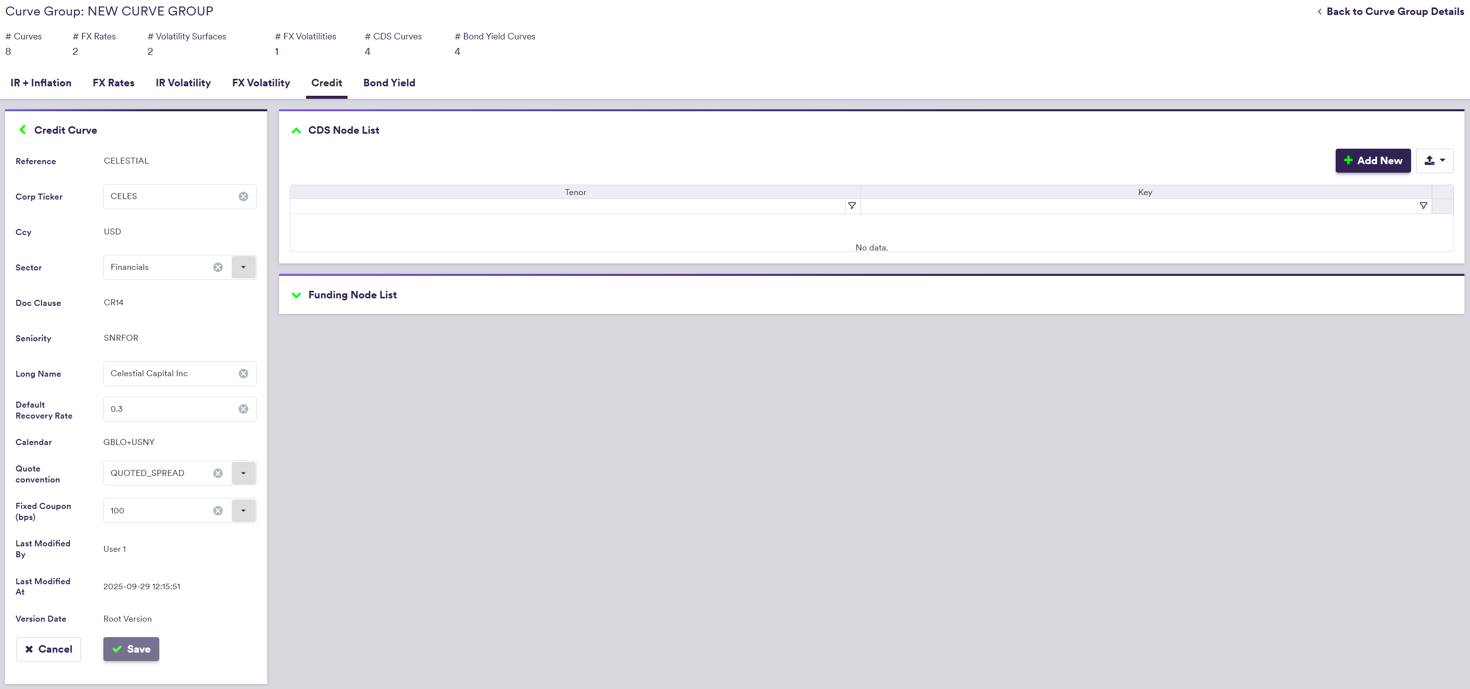 For FCA calculations, you will need to add funding nodes to the CDS curves associated to your derivatives counterparties whose Corp Ticker is the same as the counterparty’s name in the trade attributes (e.g. ‘CELES’).