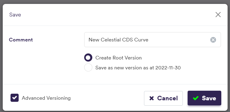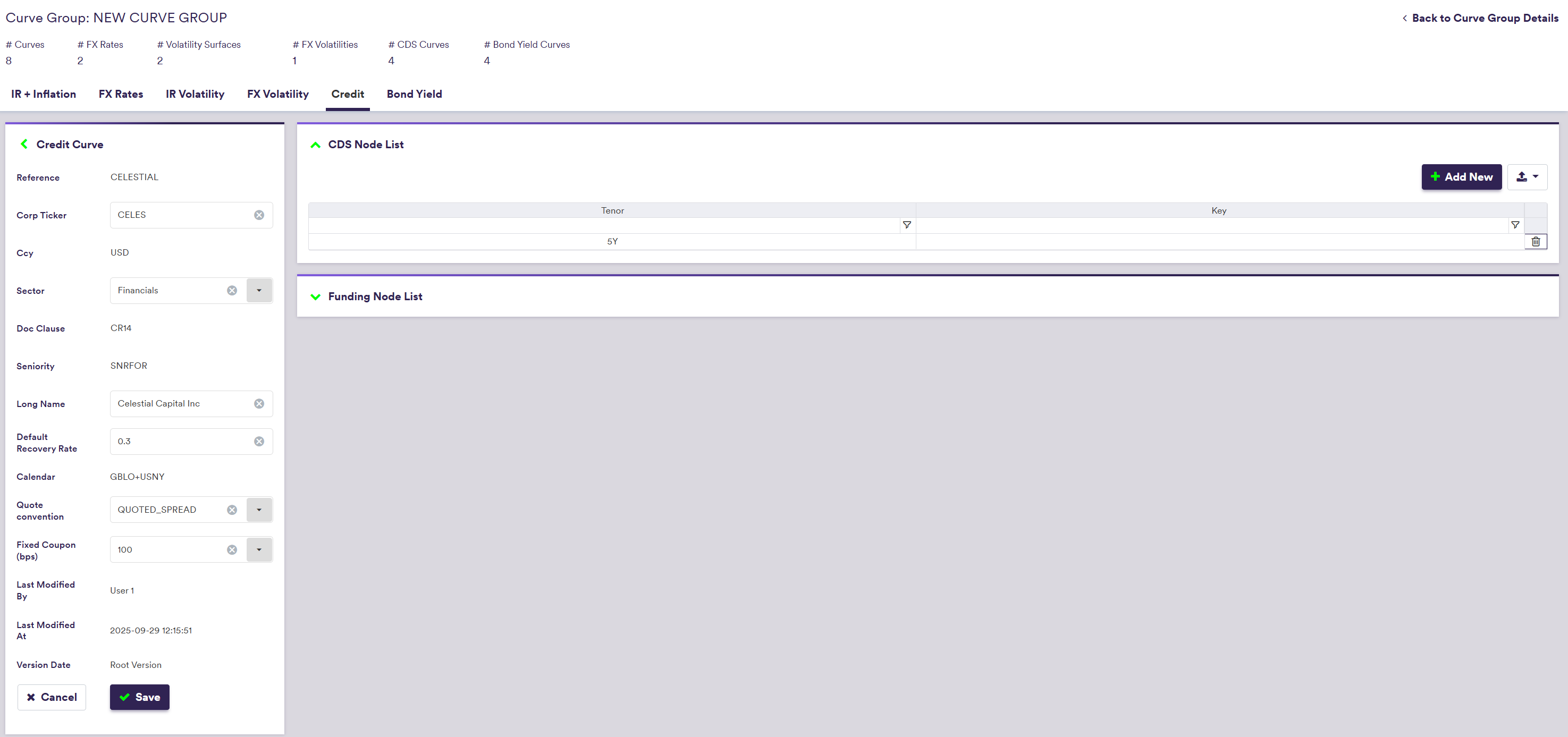 Part of our ‘NEW CURVE GROUP’ example that replicates the ‘LONDON’ curve group, this page will guide you through the process of defining a curve using two examples: manually defining the ‘CELESTIAL’ CDS curve with a 5y node, or importing all the data.