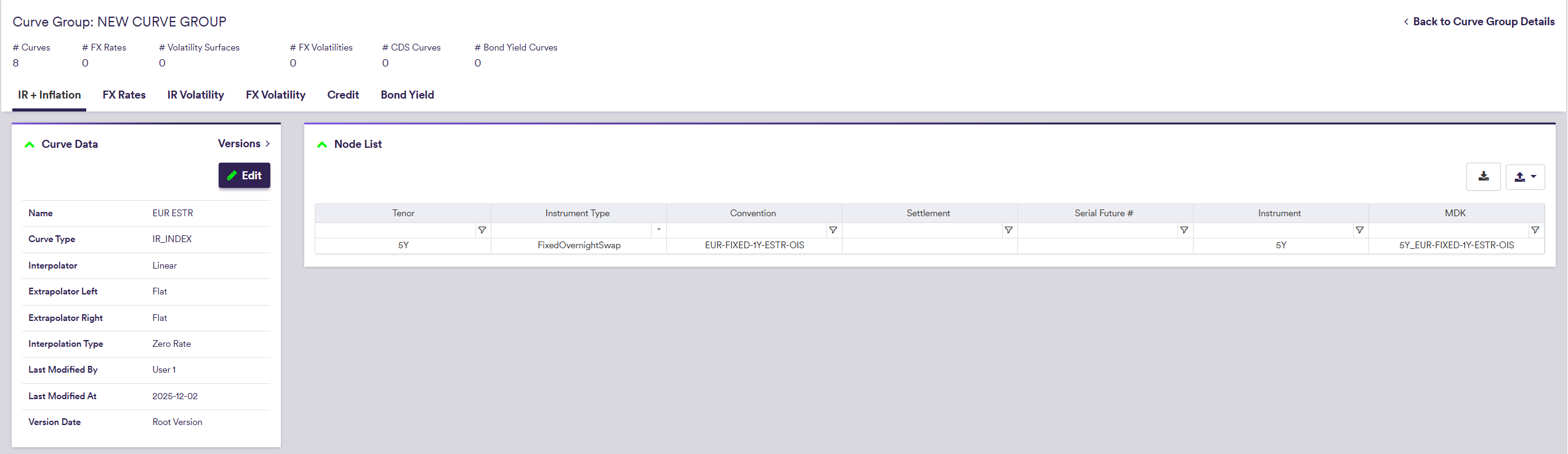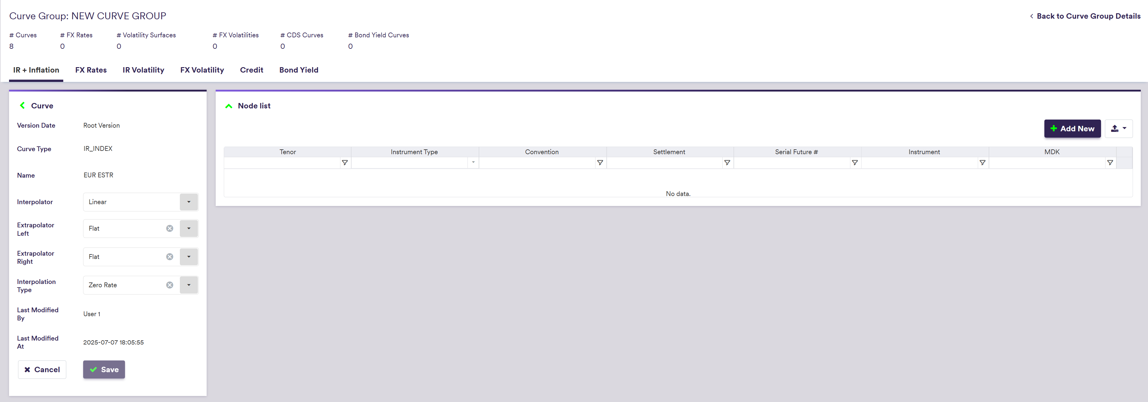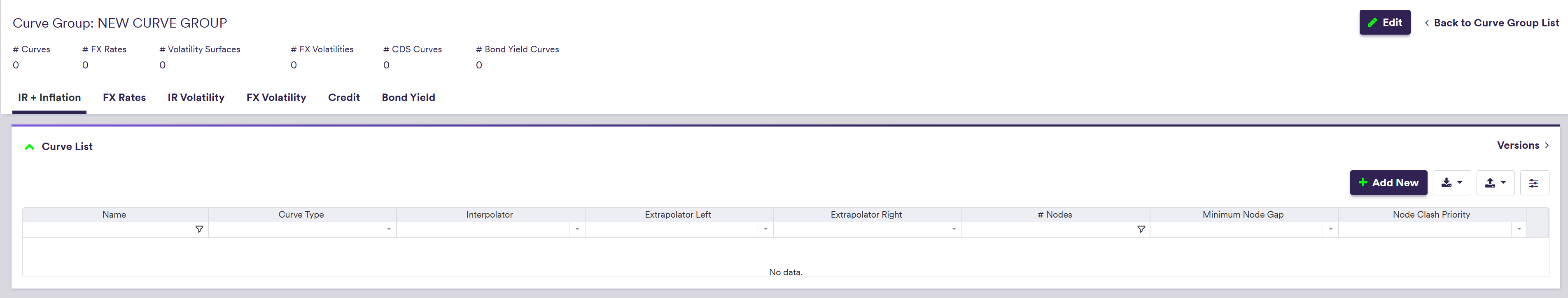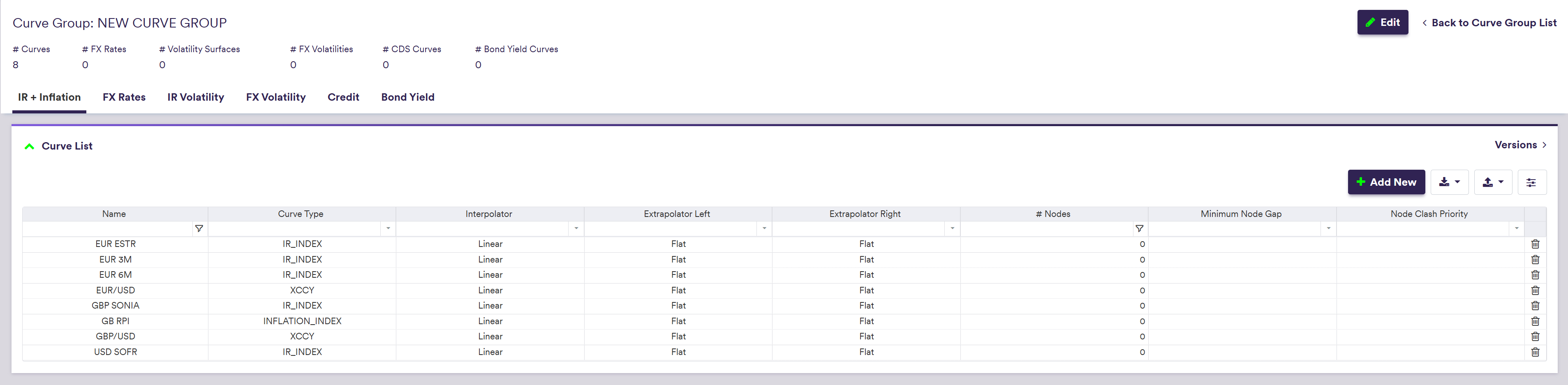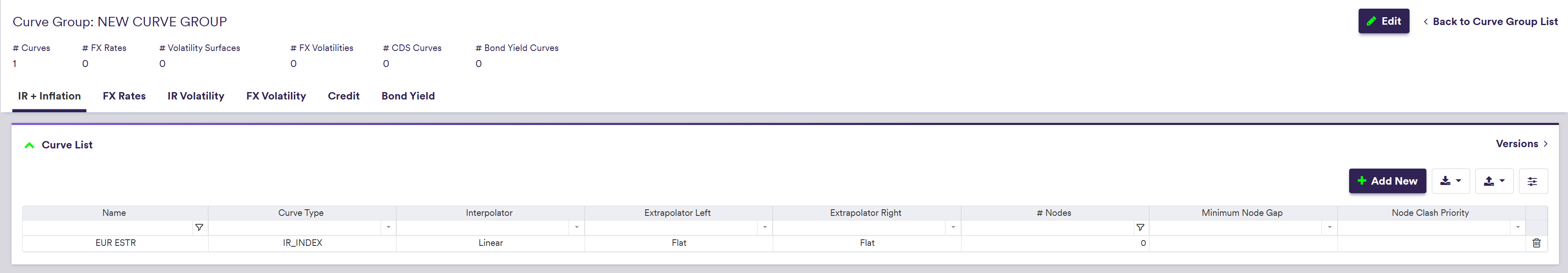 Once you have created a curve group, you can add interest rate and inflation curves to it.