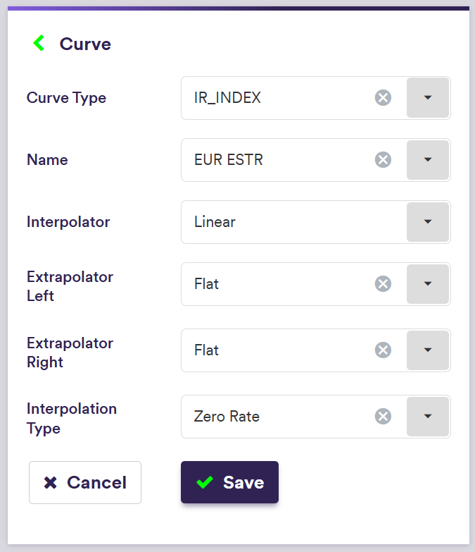| Curve Type (*) | The type of curve | IR_INDEX | INDEX_BASIS | INFLATION_INDEX | XCCY |