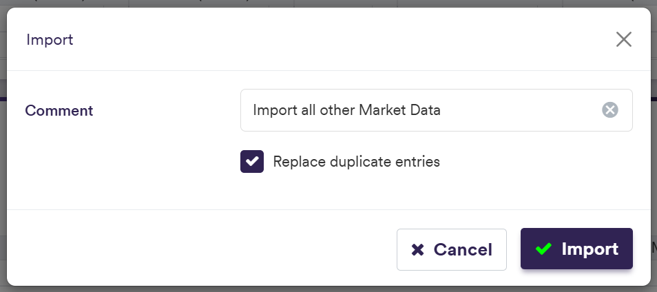 To import market data, click on (import) and select the relevant market data list definition .CSV import file.
