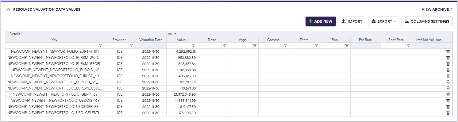 For each trade, Xplain automatically generates a unique identifier, referred to as a valuation data key (VDK).