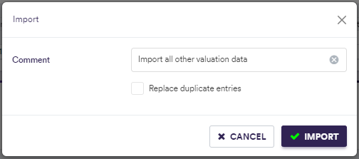 To import valuation data, click on (import) and select the relevant valuation data list definition .CSV import file.