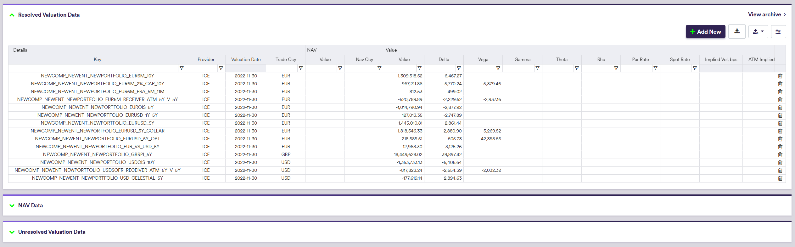 Valuation data that cannot be mapped to a trade via a valid VDK will be flagged as “UNRESOLVED Valuation Data”.