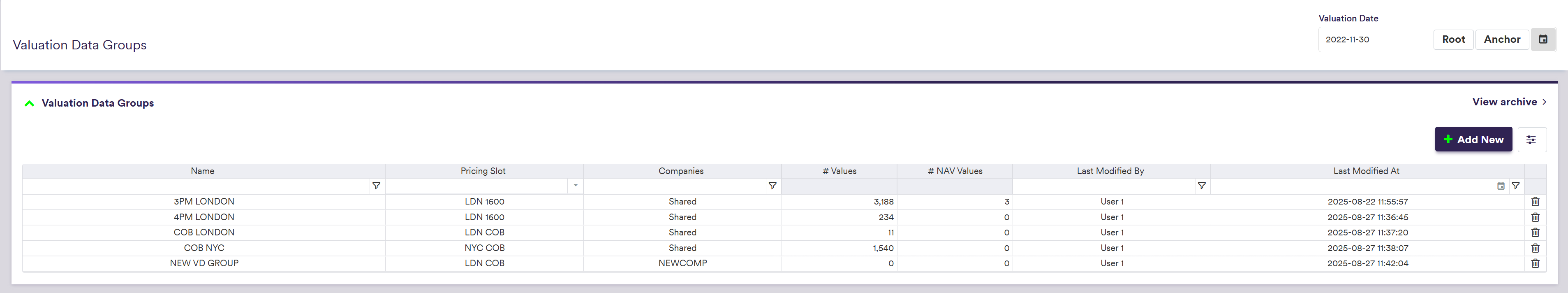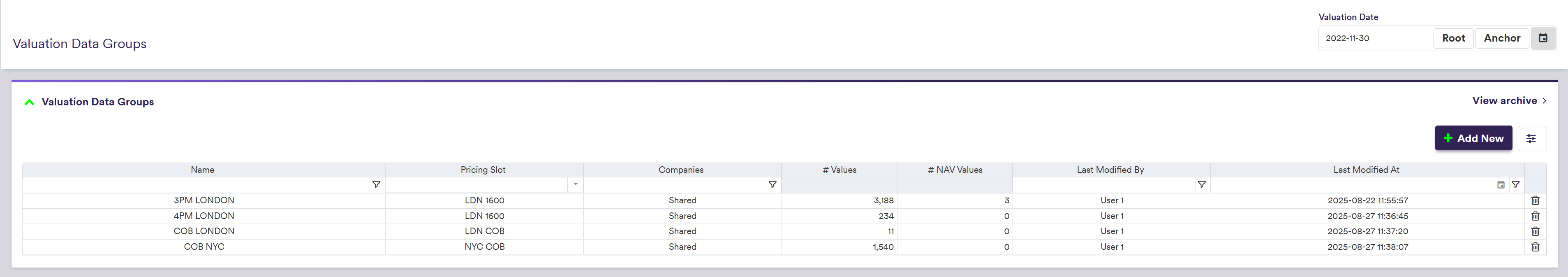 Each valuation data group is associated to a pricing slot which will determine eligibility when performing valuation data anomaly detection.
