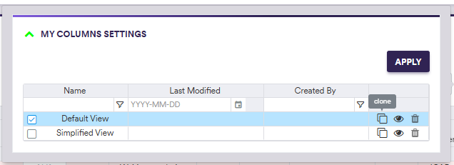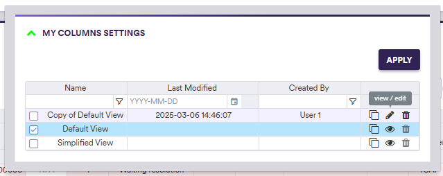 In the example below, you will go through configuring your own view, by cloning the ‘Default View’ and deselecting the ‘Credit Sector’ column.