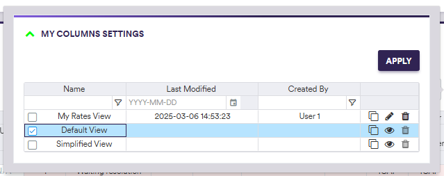 You can now select the ‘My Rates View’ display configuration (or any other display configuration) by clicking on