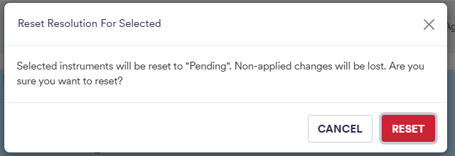 Apply a chosen resolution action either collectively (i.e. on all or on a sub-selection of filtered or explicitly selected items) or individually (1) - applied resolution for selected items can be undone by clicking on