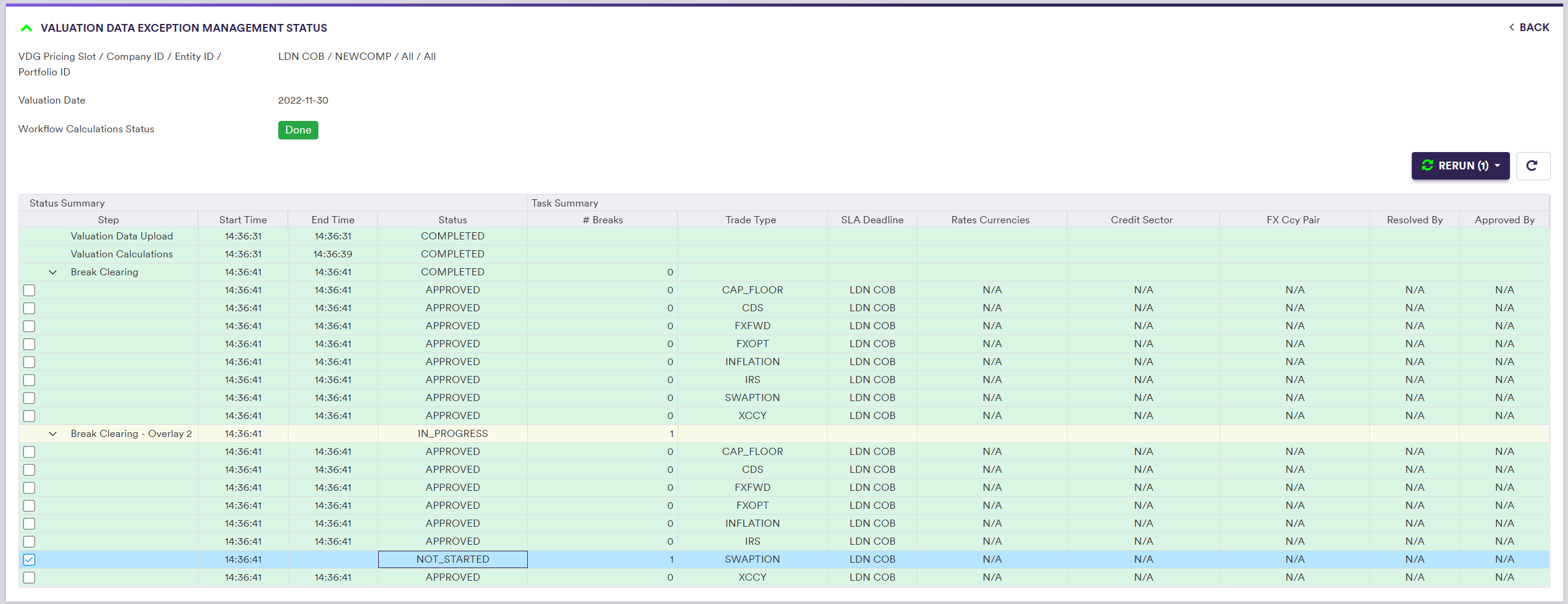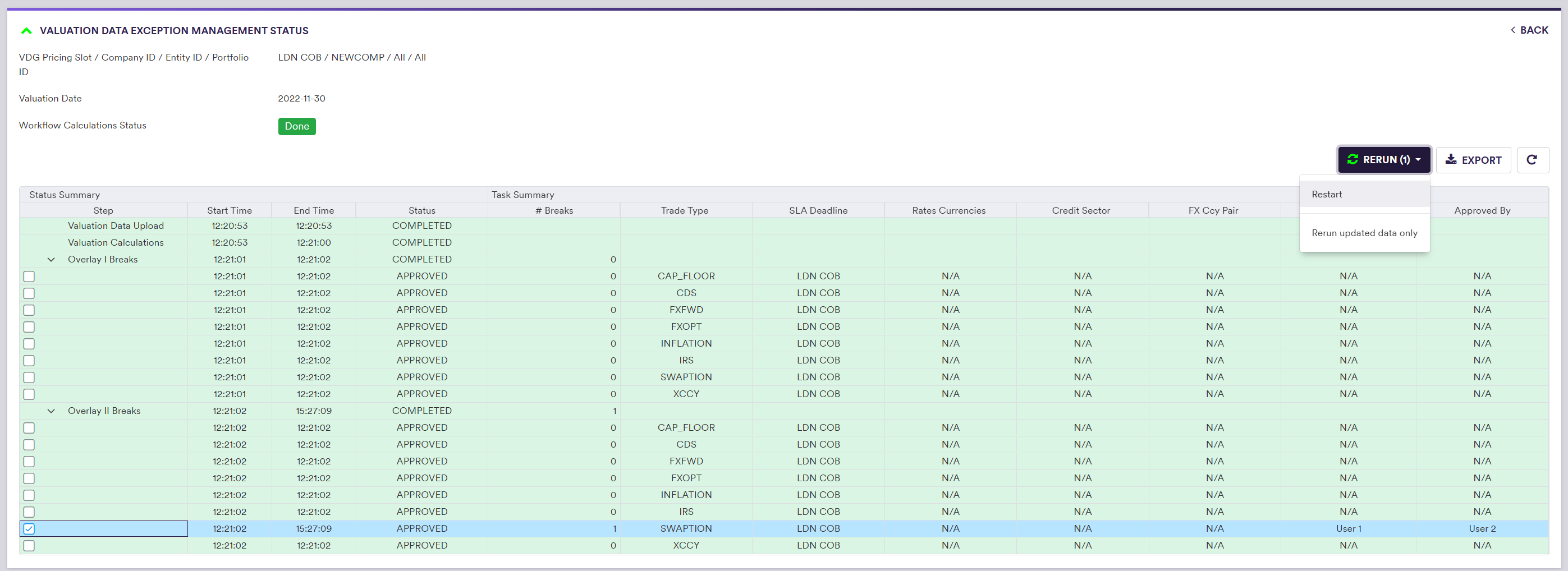 At any point of the VD XM workflow, at the dashboard level, you will have the option to select and re-run selected streams (in its entirety or updated valuation data only).