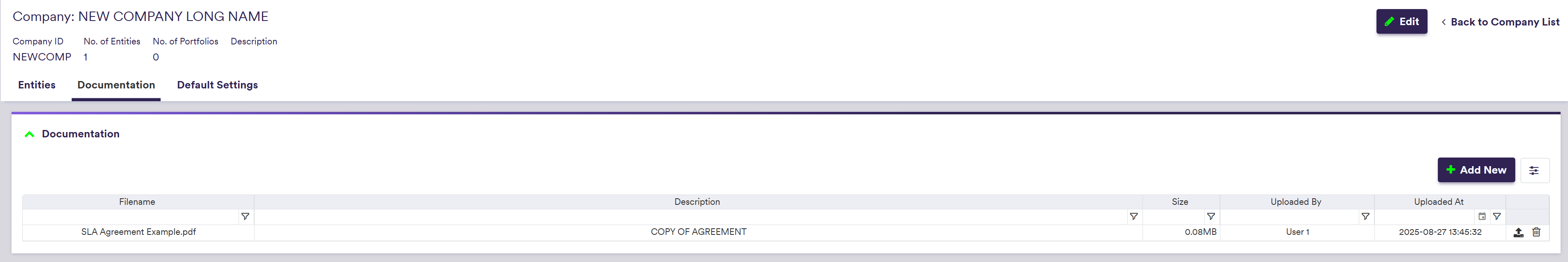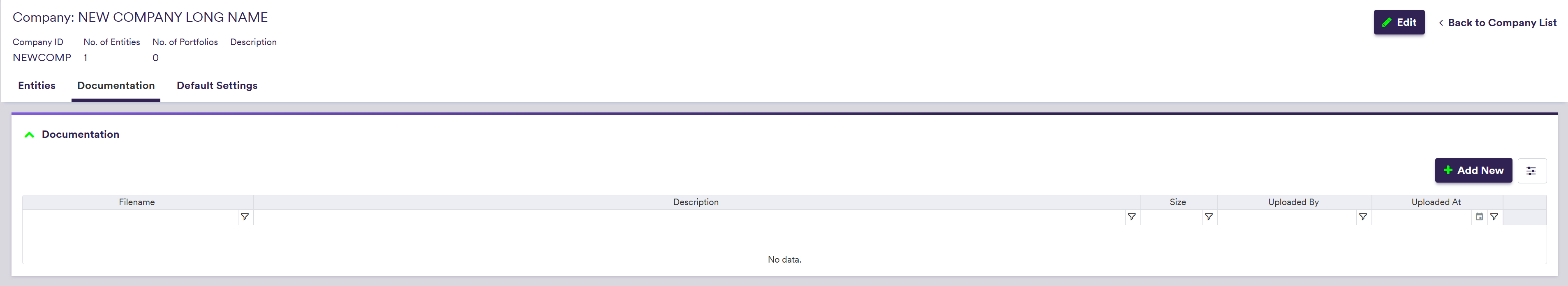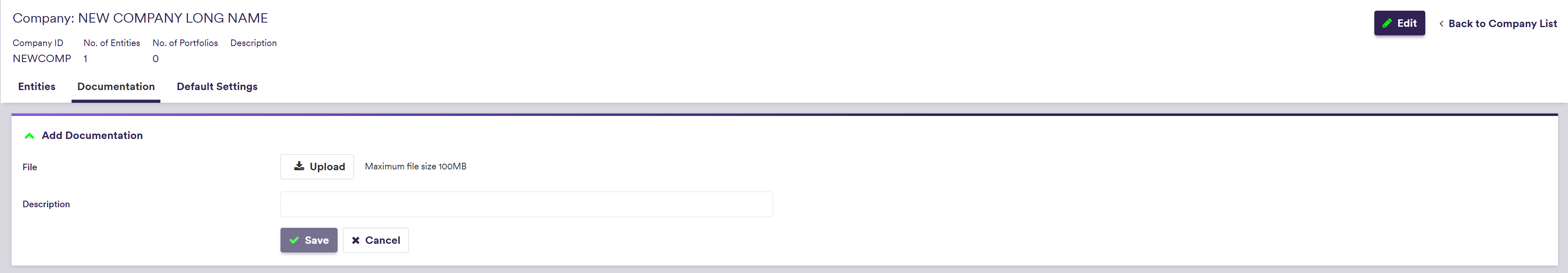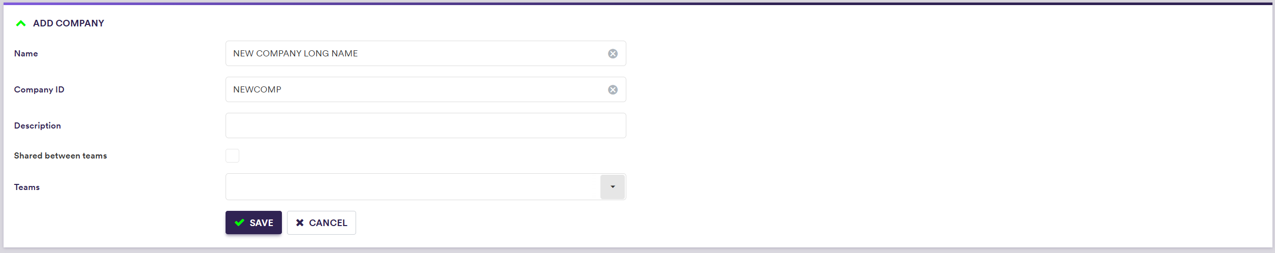 | Company ID | The ID for the company (immutable once saved) | Free text (no spaces) |