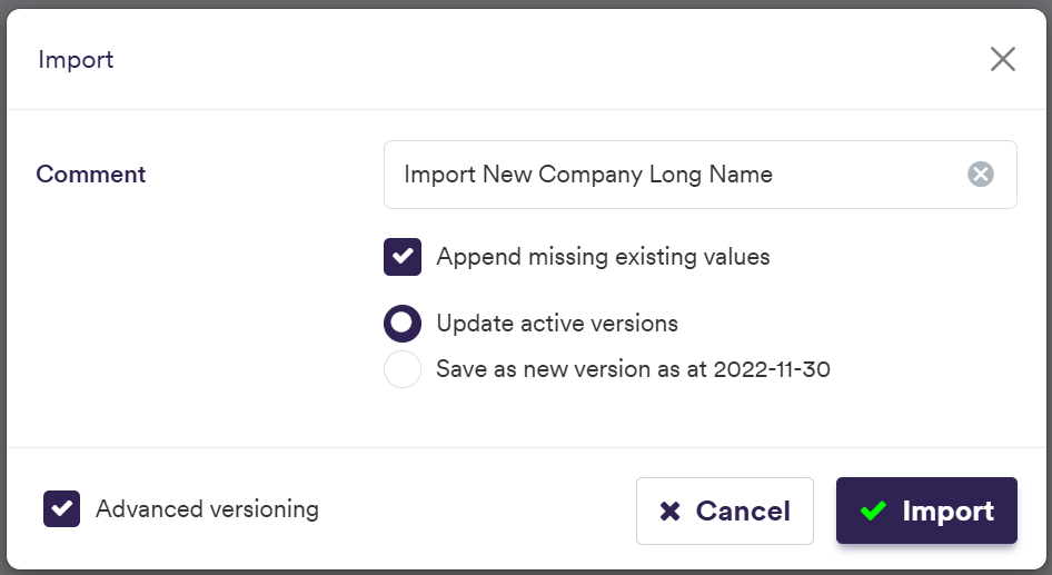 To import a company (or a list of companies), click on (import) and select the relevant company list definition .CSV file.