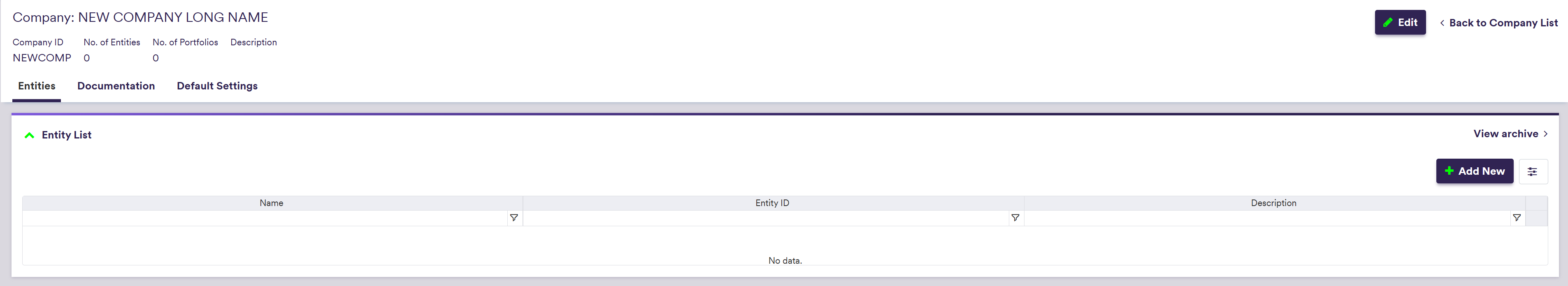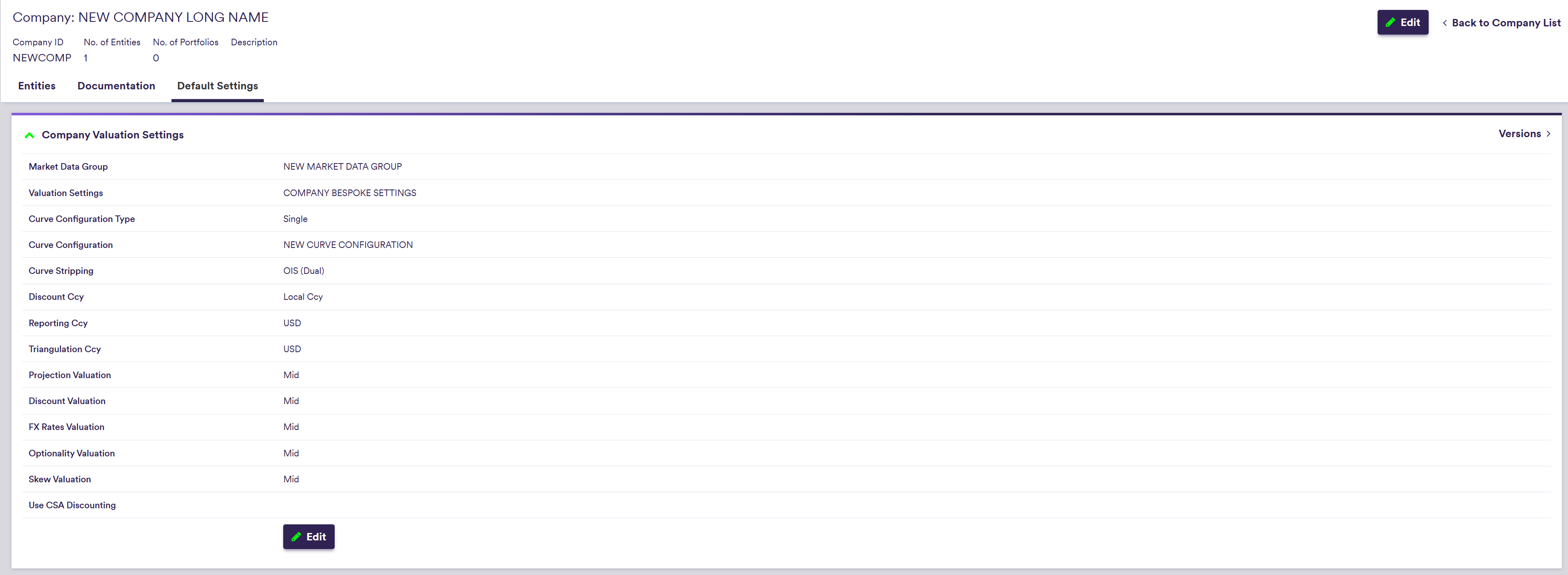 Part of our ‘NEWCOMP’ example that replicates ‘LONDON_FICC’, this section will guide you through the process of defining default settings at company and entity level.