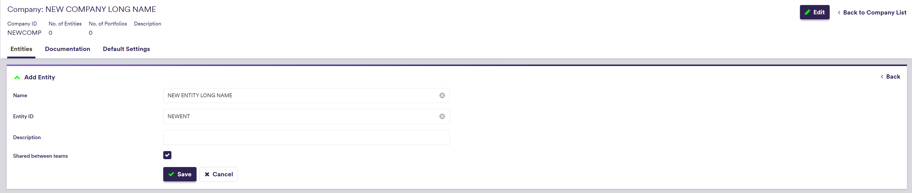 | Shared between Teams | Whether the entity's details and portfolios will be accessible across all teams | Boolean |