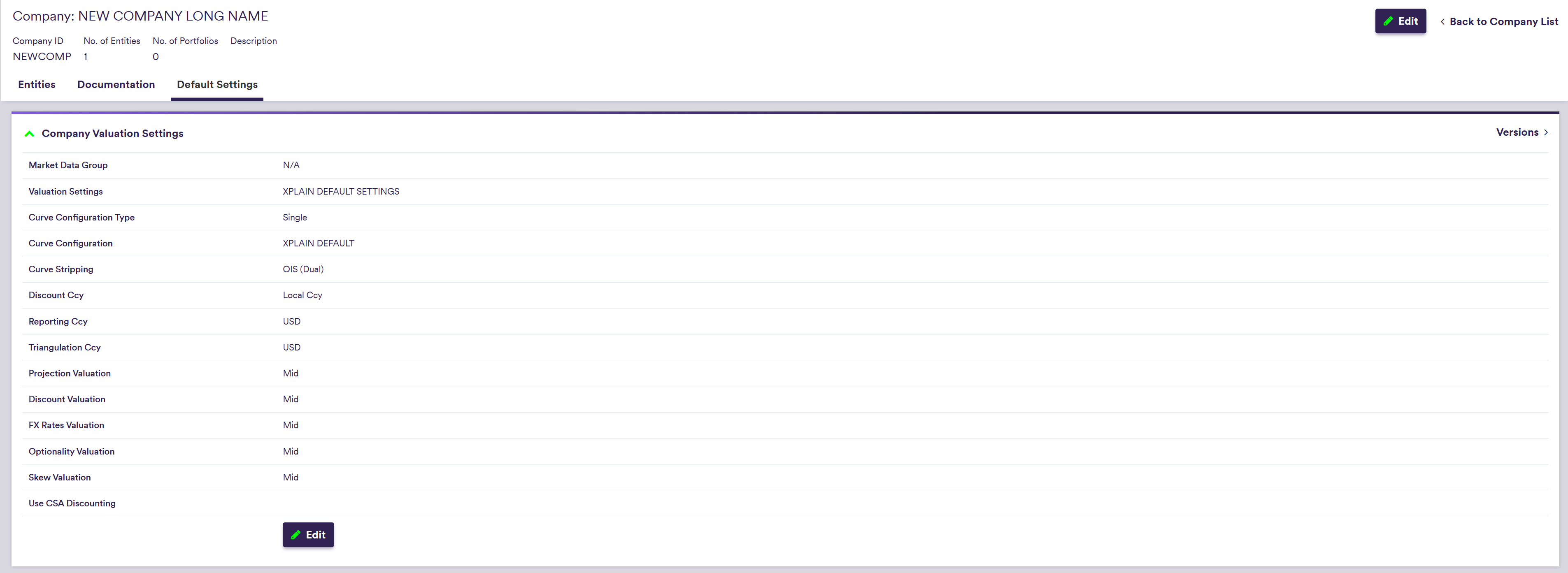 XPLAIN DEFAULT SETTINGS | COMPANY BESPOKE SETTINGS |