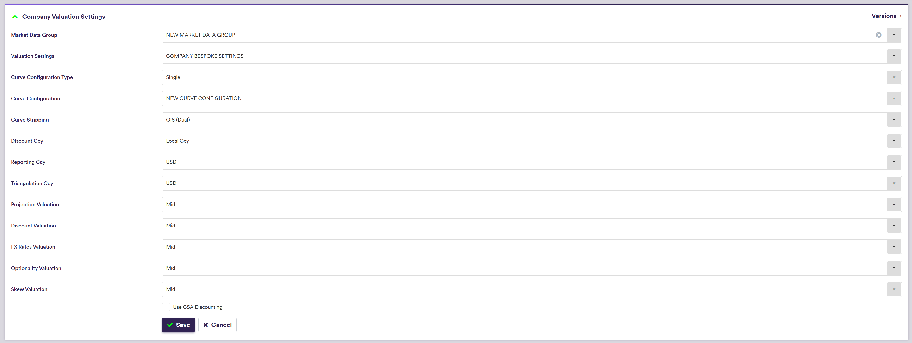 | Valuation Settings | If Valuation Settings = 'COMPANY BESPOKE SETTINGS', you can define bespoke company valuation settings |