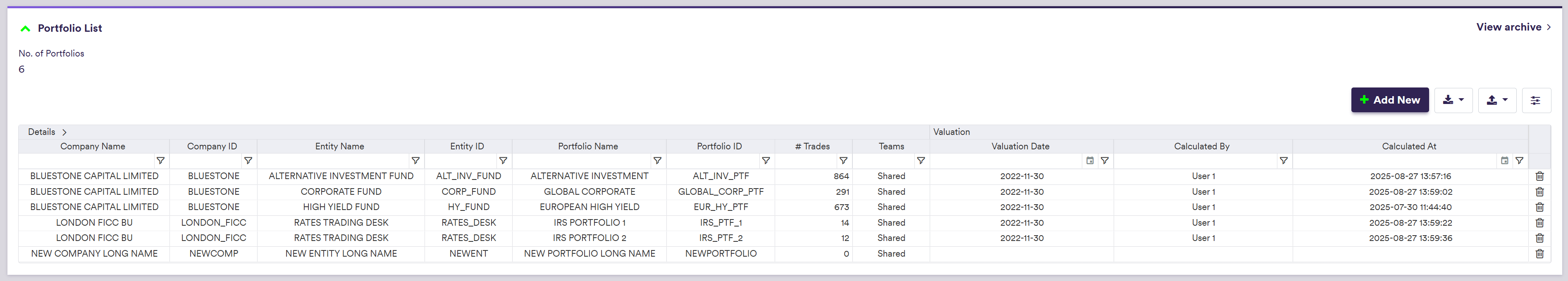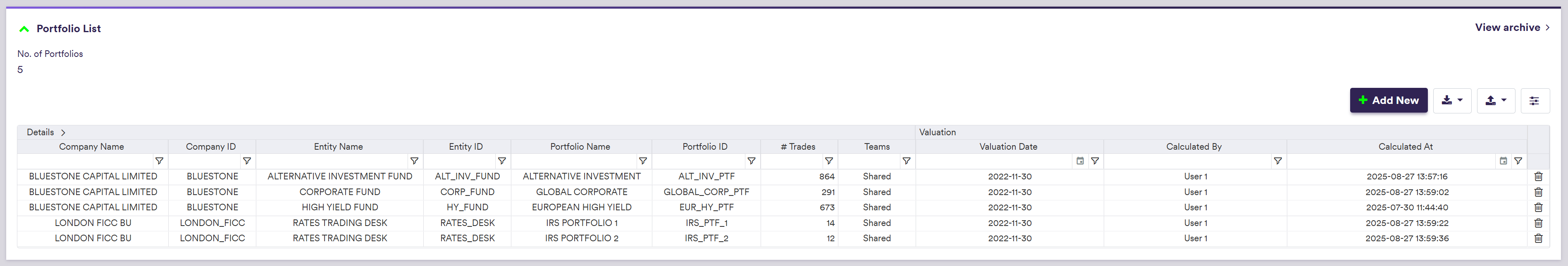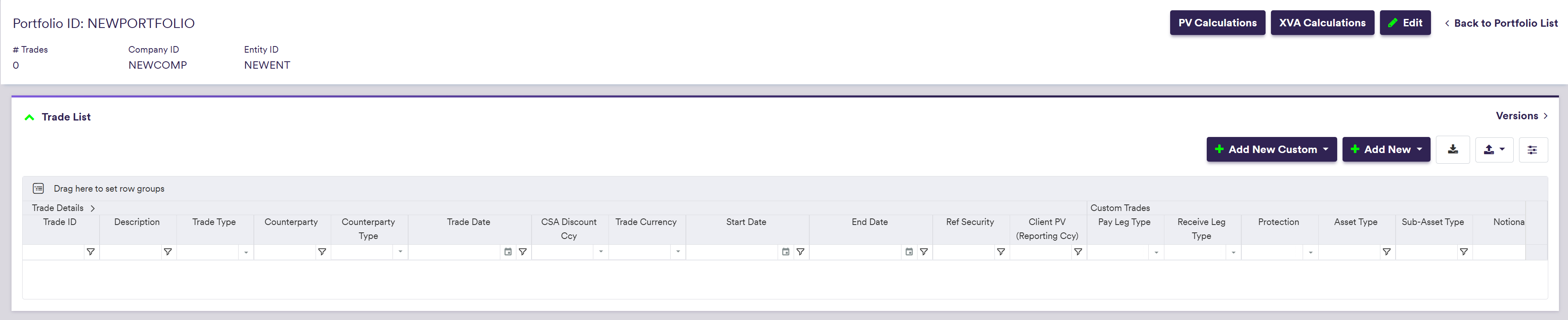 A portfolio holds the trades whose details can be used for PV calculation, net currency exposure calculations and simulations, or valuation data anomaly detection.