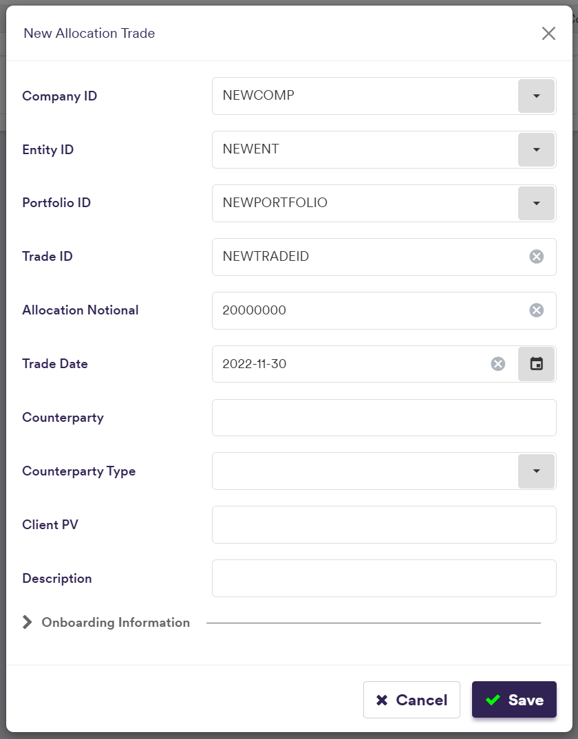 | Allocation Notional (3) | Notional of allocation trade | Numeric. Must be positive. | M |