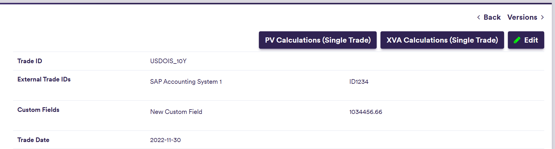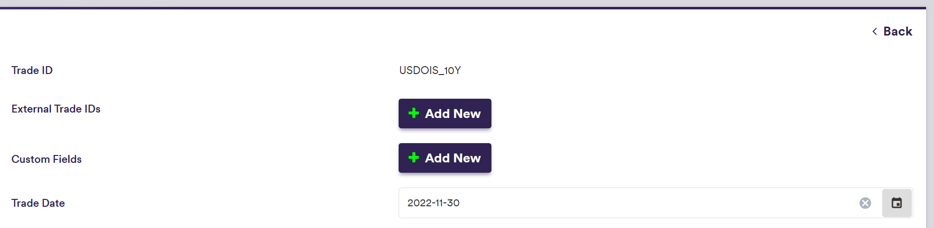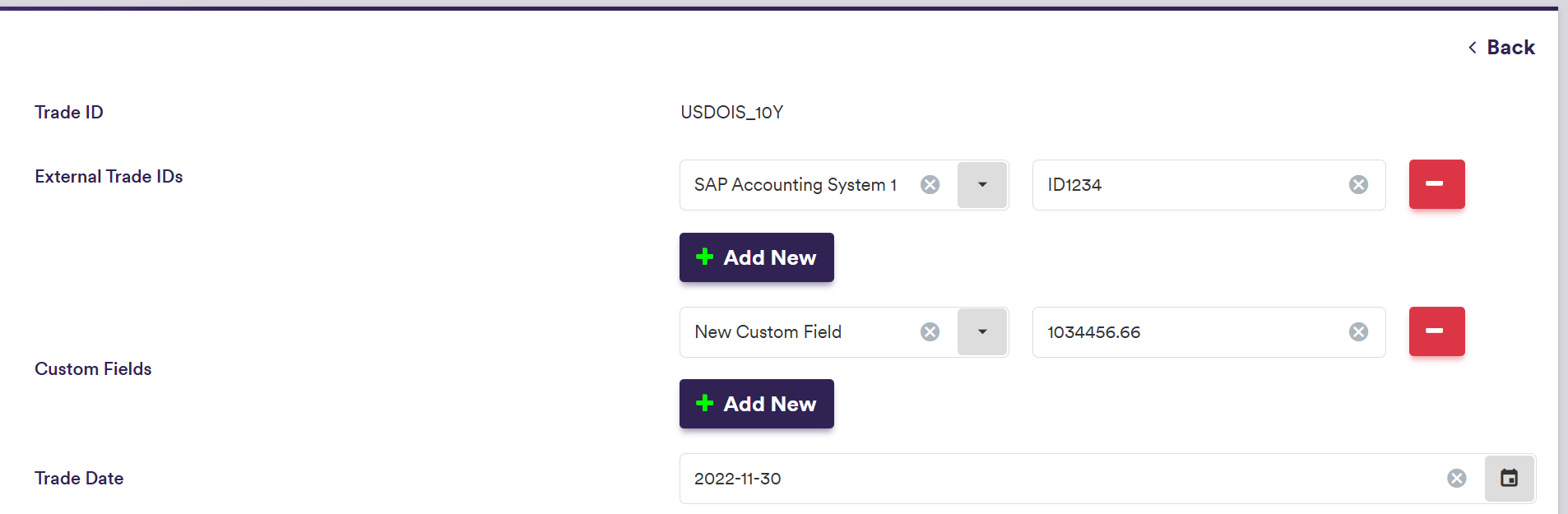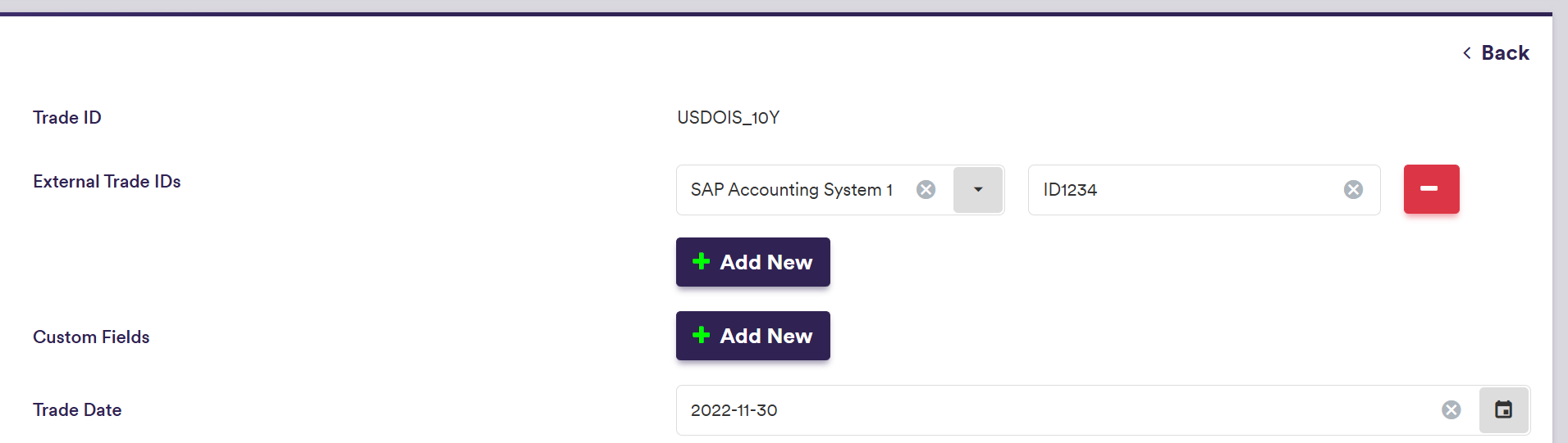 | External Trade IDs (*) | A list of external ID Sources and corresponding Trade ID |