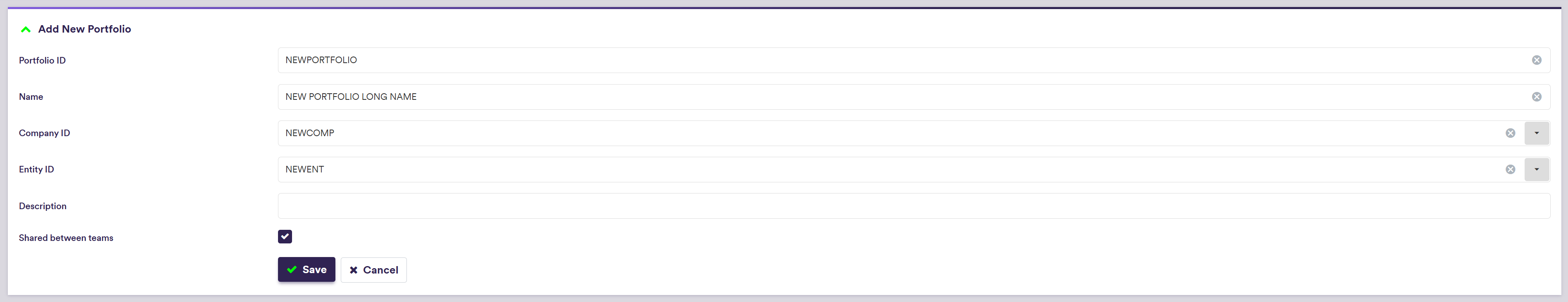 | Portfolio ID | The ID for the portfolio (immutable) | Free text (no spaces) |
