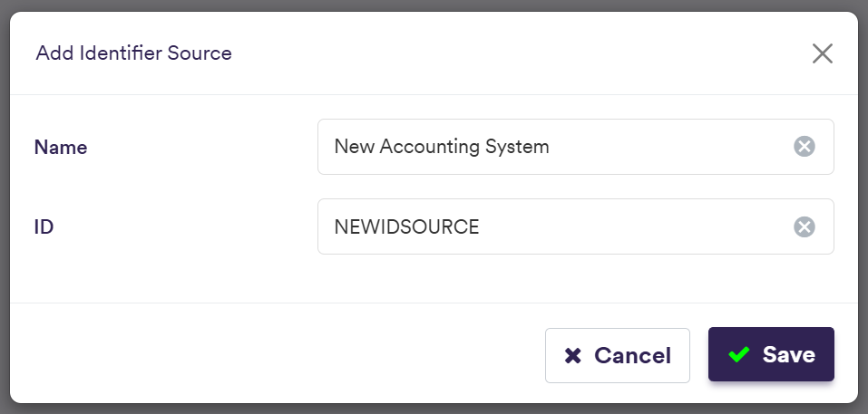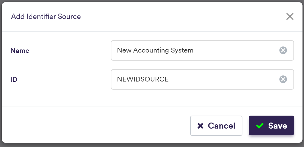 ID The unique ID for the External Trade ID Source (immutable once saved) Free Text (no spaces)
