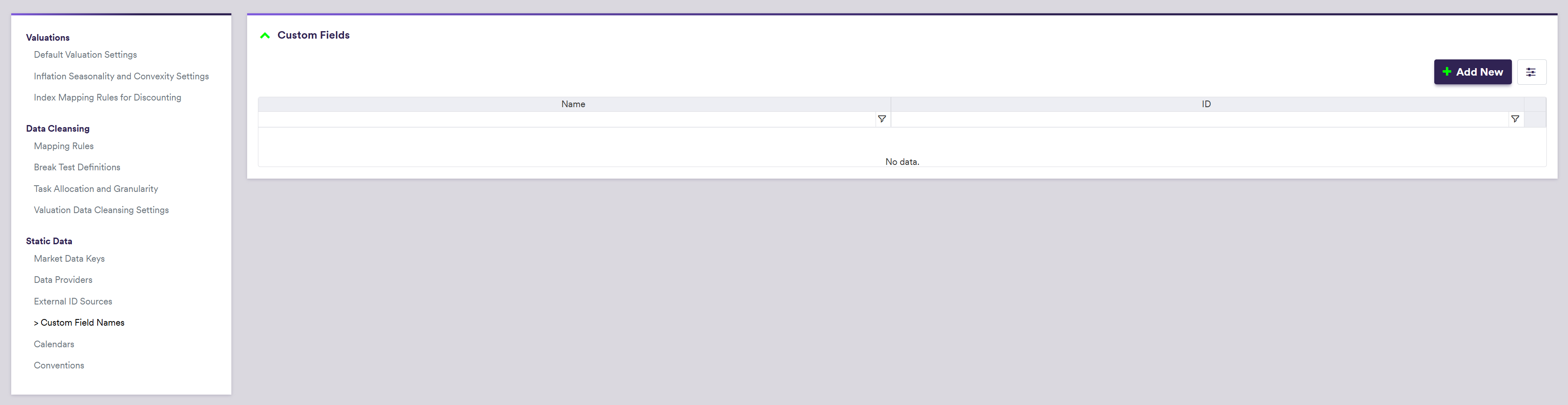 Data/Static Data/Custom Field Names