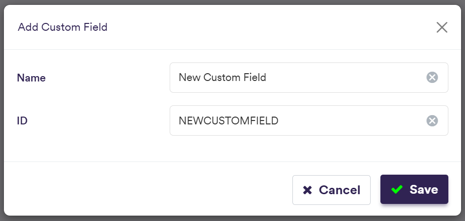 ID The unique ID for the Custom Field (immutable once saved) Free Text (no spaces)