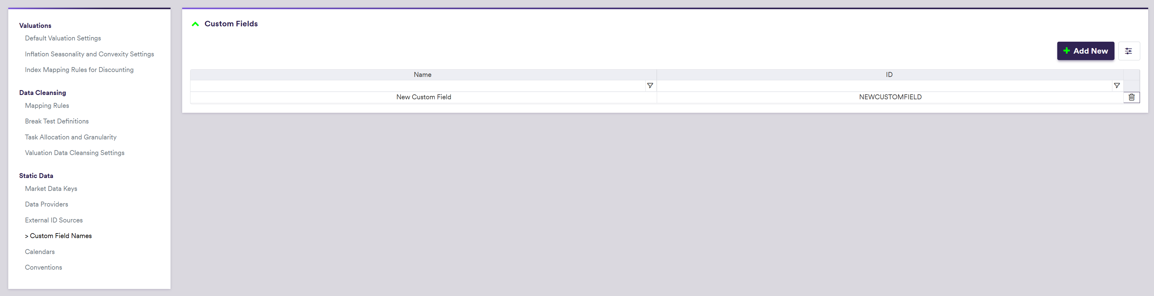 Static Data - External ID Sources and Custom Field Names for Trades