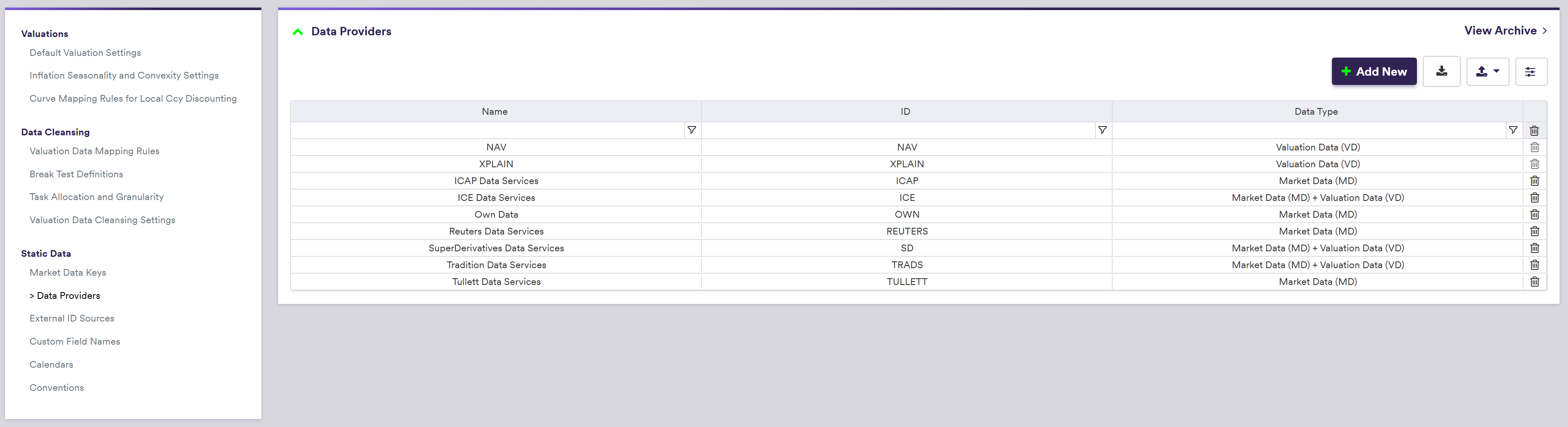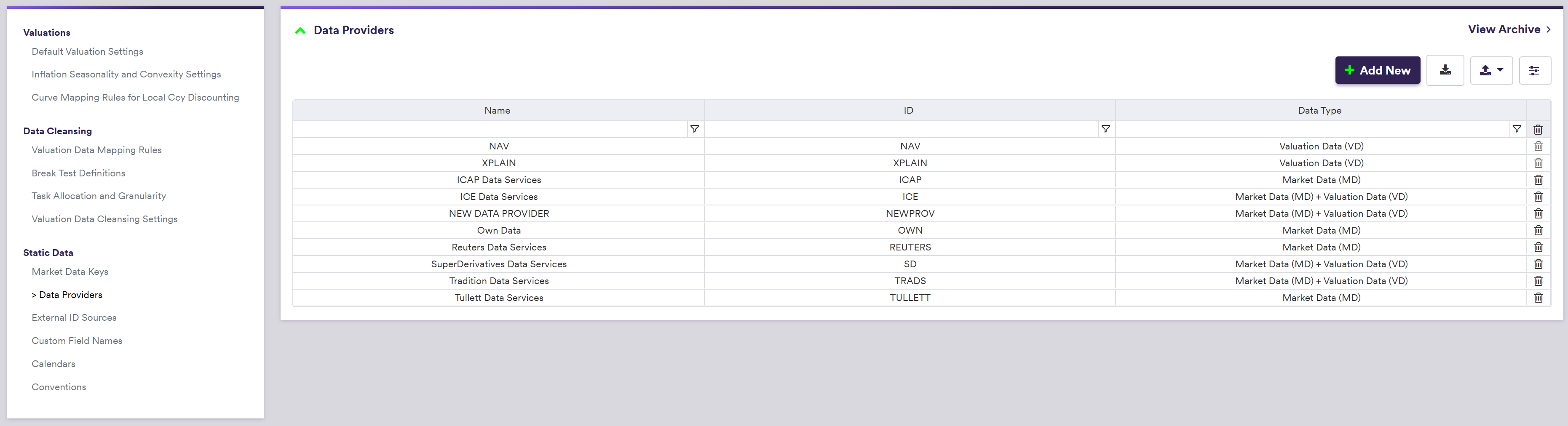 Xplain-native Valuation Data Providers