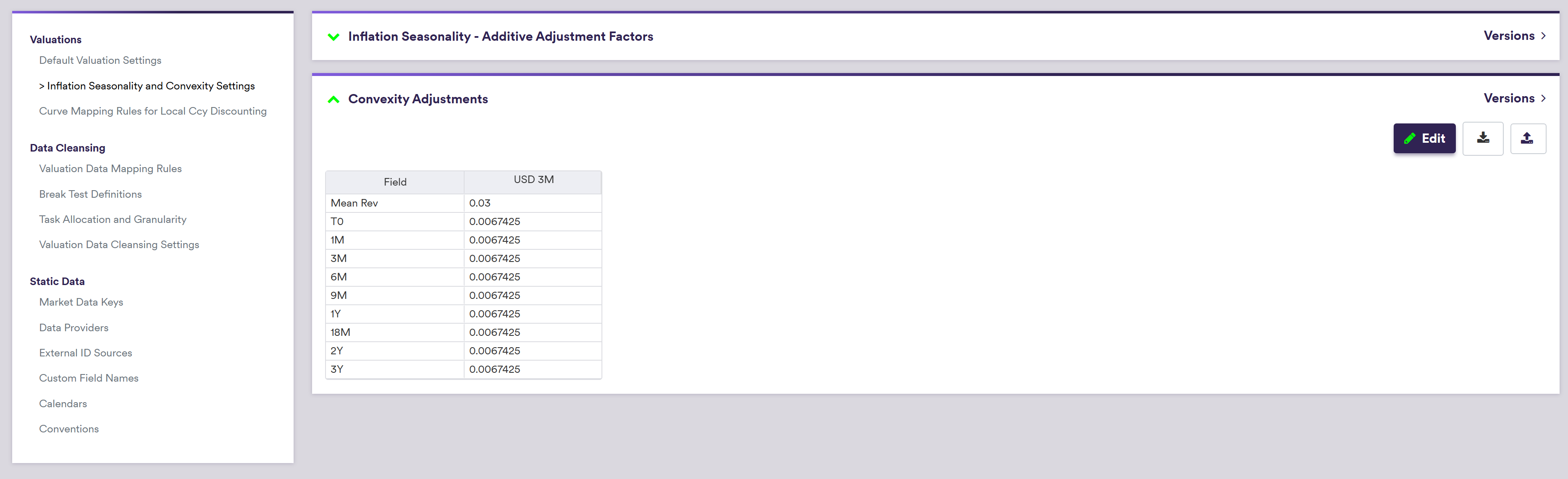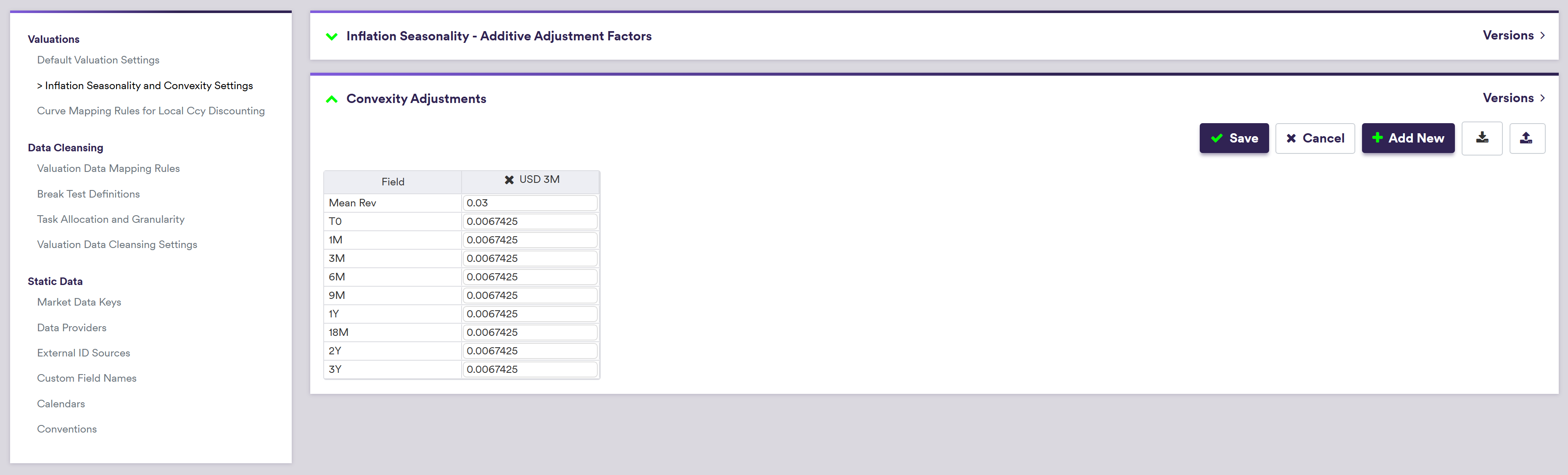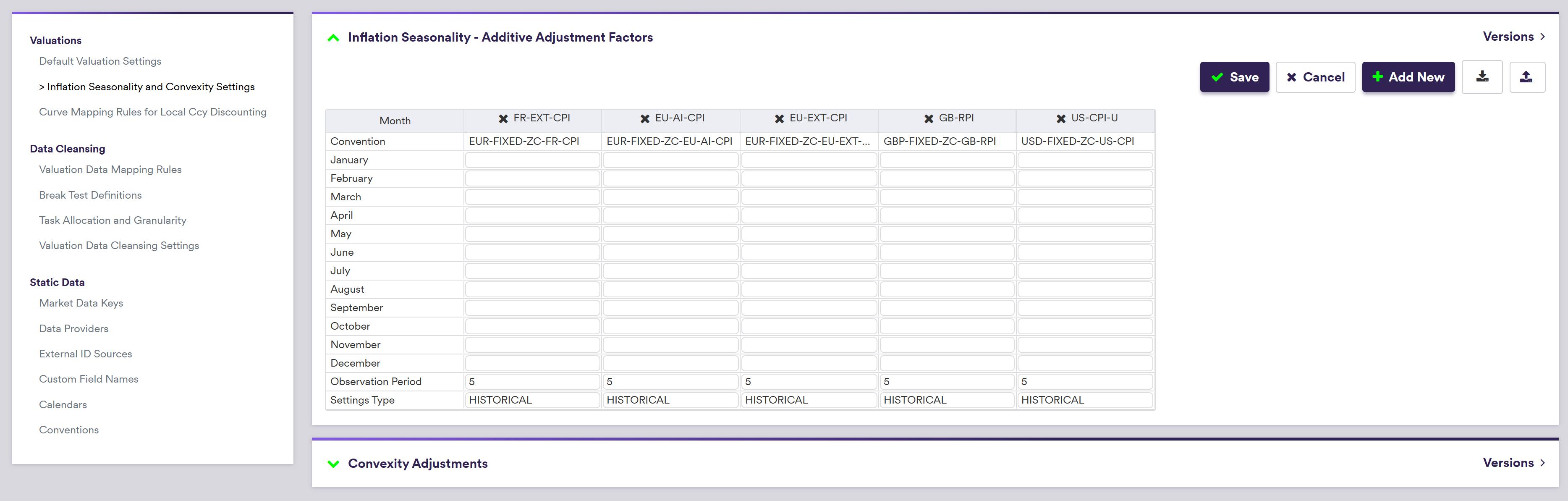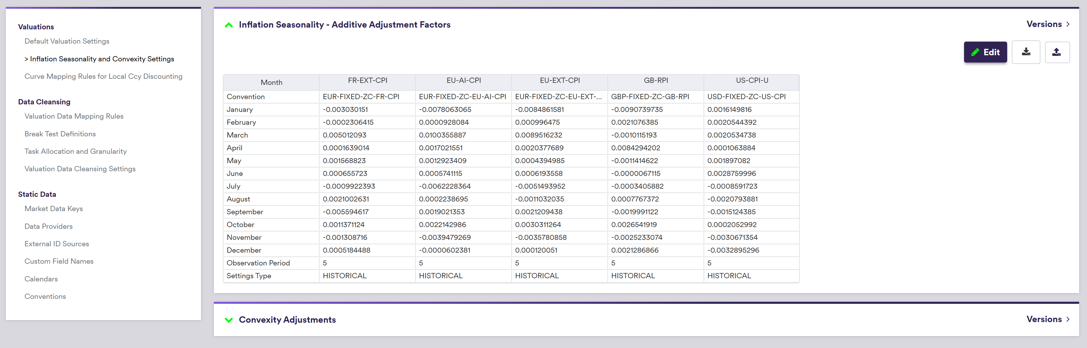 - inflation seasonality and convexity settings, to define inflation seasonality factors and interest rate future convexity adjustments