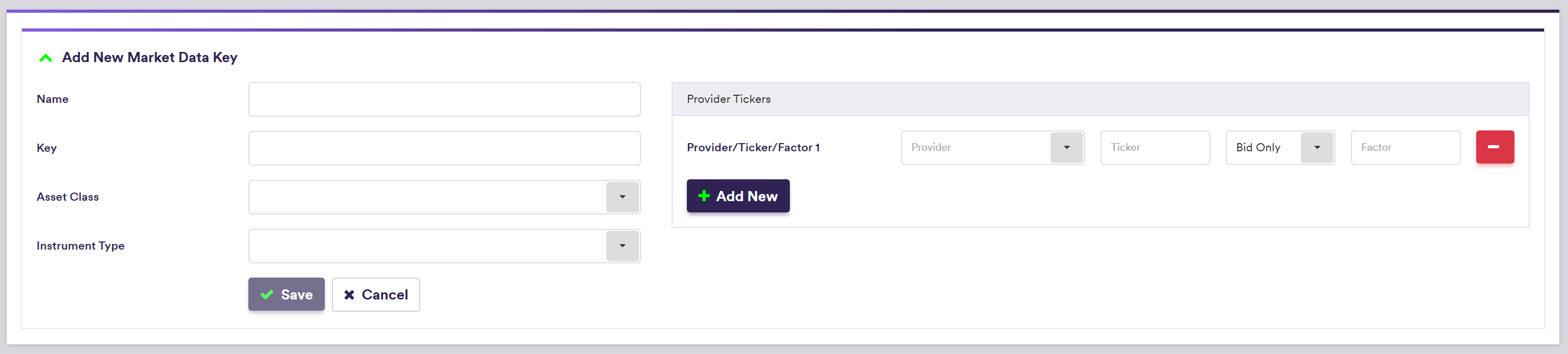 | Provider | The raw market data's provider for that MDK | Any existing market data provider |