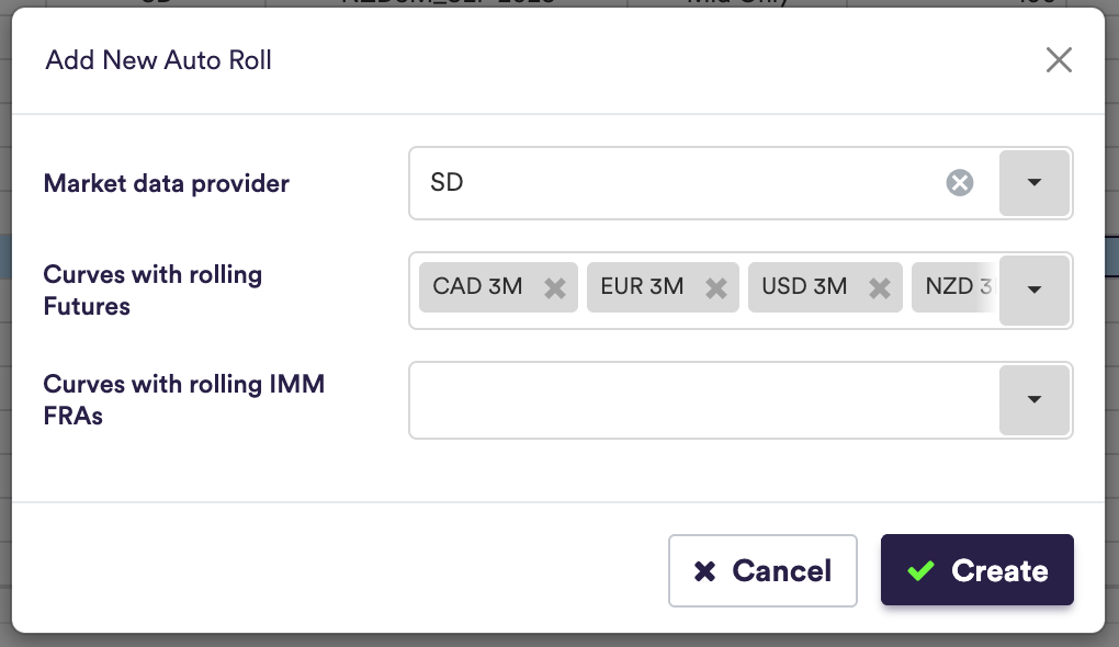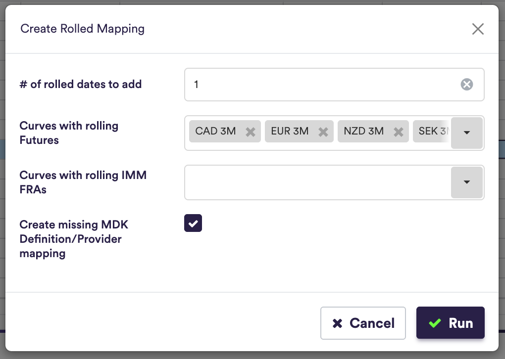 - Execute the roll to create provider/ticker mappings for the selected curves for the required number of future iterations.