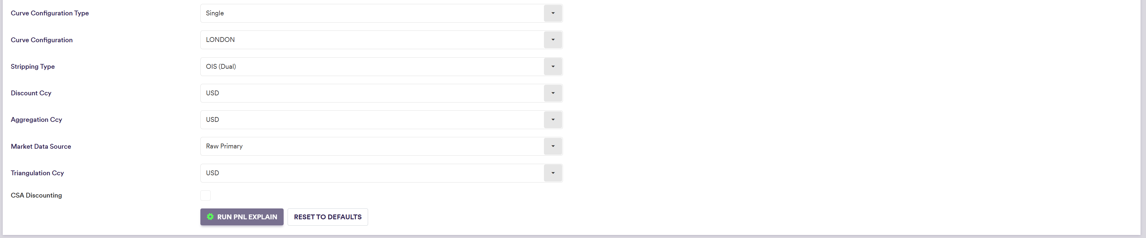 Once you have a pricing environment ready, you can run PNL explain calculations between two dates for a given portfolio. This will allocate the change in valuation on a trade basis into first-order sensitivity components (i.e. DV01, BR01, CS01/INF01, Carry, Spot FX and Vega) and the remaining unexplained PNL component.
